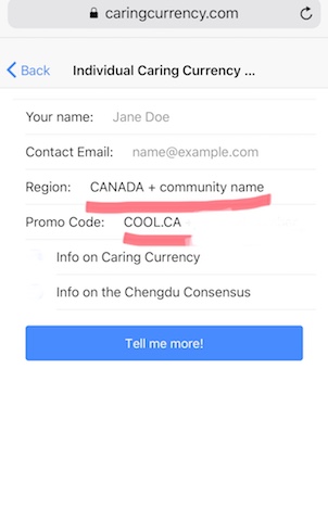 Don't forget to enter "CANADA" and your community name in the region box and "COOL.CA" in the PROMO CODE box.