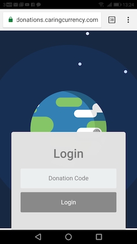- Then "Log In" with your emailed "Donation Code" to choose the type of Caring Currency you wish to donate (more Caring Currencies are coming, welcome to nominate your favourite)