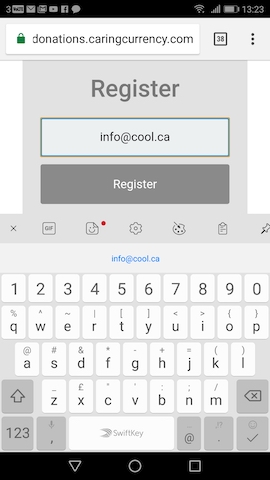 Use your mobile and go to www.CaringCurrency.com to register your email address.